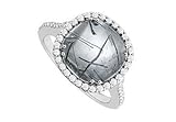 Genuine Tourmalinated Quartz and Diamond Ring : 14K White Gold - 2.50 CT TGW Size 12